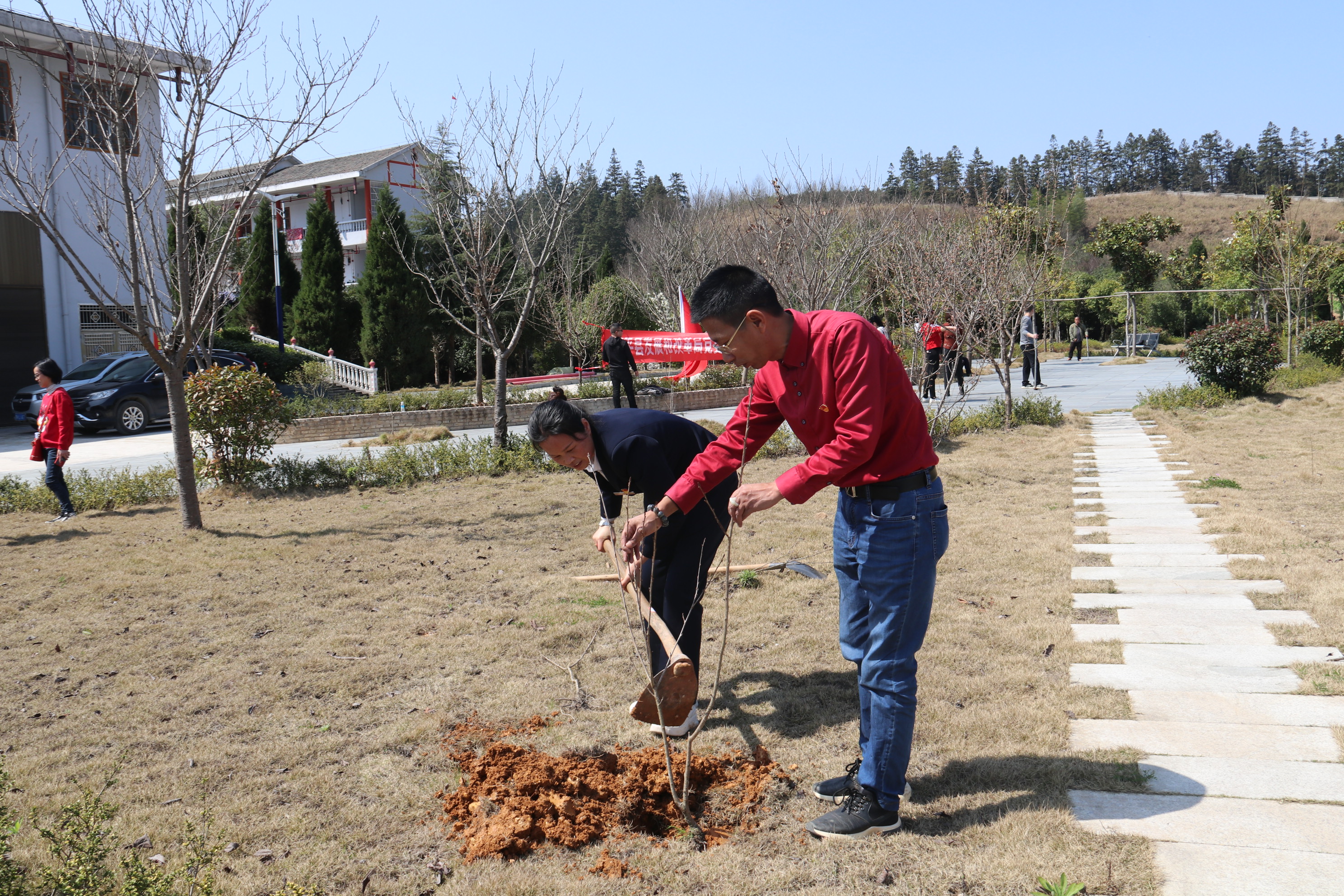 到达黎平县社会福利院后,大家手拿锄头、铁锹和小树苗,在黎平县社会福利院、未成年人保护中心周围开展植树、绿化活动,通过宣传与实际行动相结合的方式,植树造林,保护环境,呼吁全县人民关注绿化,关注环保,让我们生活的家园更加绿色、和谐、温馨。用实际行动践行“绿水青山就是金山银山”的发展理念。